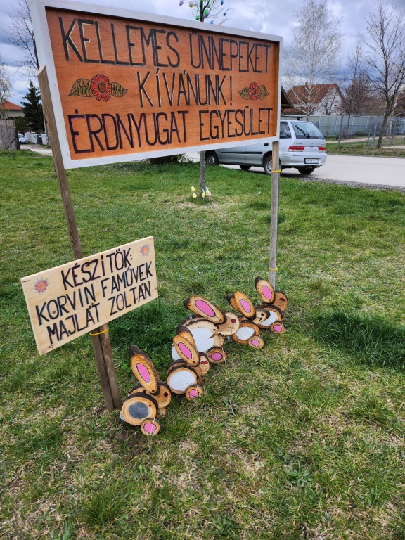 Közeleg a Húsvét és gondoltuk, hogy meglepjük a környék lakóit és az erre járó embereket. Kicsit feldíszítettük a Bóbita játszótér előtti füves területet, Dr Asztalos Éva, Korvin faművek és Majlát Zoli segítségével /nagyon köszönjük az önzetlen felajánlást